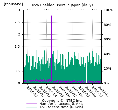 IPv4/IPv6アクセス比率(日本)